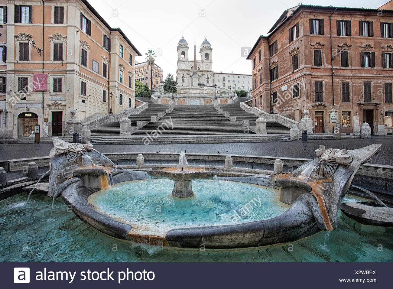 Capital Italy Europe Piazza Rome Spanish Steps Trinita Dei Monti Water Play Of Water Well Stock Photo Alamy