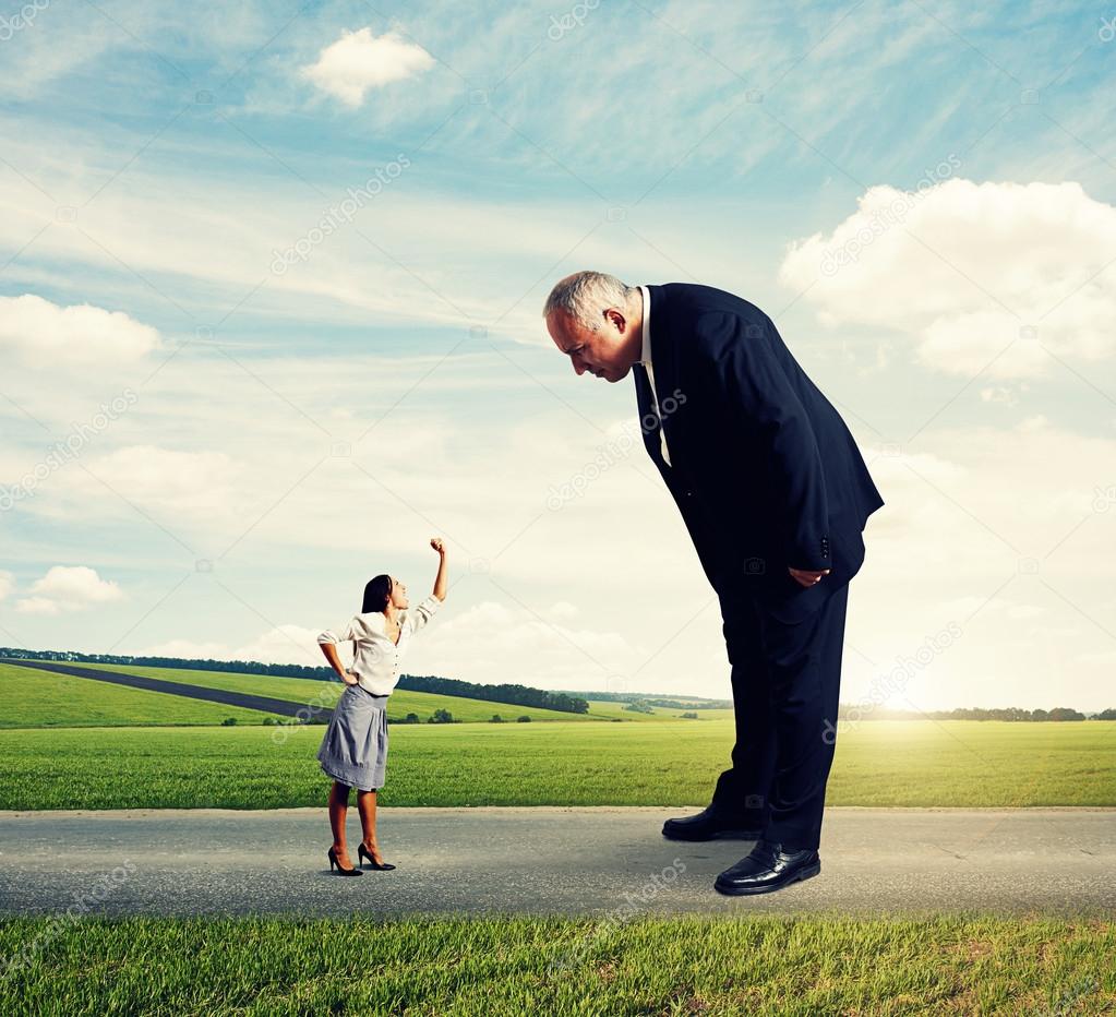 Man Looking At Emotional Big Woman Stock Image Image Of Businessman Small 48953843