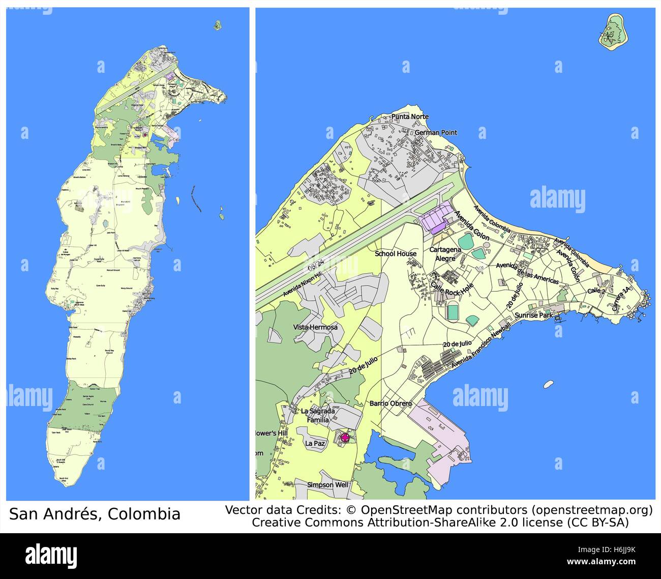 From simple outline map graphics to detailed map of San Andres. San Andrés and the neighbouring Providencia Island and Santa Catalina Island form the department San Andres y Providencia. Try to go on the first boat because its not too big and everyone who goes to San andres hoes to visit.