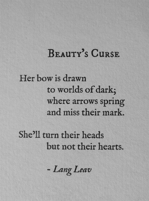 Lang Leav Quote Beauty S Curse Her Bow Is Drawn To Worlds Of Dark Where Arrows Spring And Miss Their Mark She Ll Turn Their Heads But
