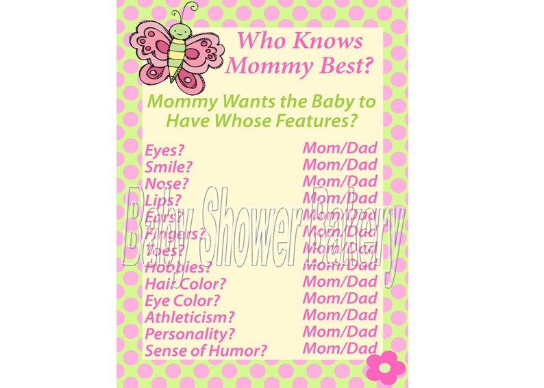 Butterfly Baby Shower Game Pink And Green Butterfly Baby Etsy
