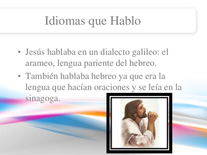 Que lengua hablaba jesús un especialista llamado Joachim Jeremías expresó que sacando los nombres propios y algunas palabras se encuentran por lo menos 26 palabras en arameo vinculadas a Jesús en los evangelios o por fuentes rabínicas como por modelo de abba papaíto papá expresado por Jesús a Dios o como en la frase del Padrenuestro perdónanos nuestras ofensas que aunque se. Y así como en la Francia medieval existían los de oil y de oc los de Judea pronunciaban ch la s de los efraimitas. ARAMEO HEBREO GRIEGO LATÍN COPTO FENICIO ÁRABE Sin ningún género de duda Jesús hablaba dos o tres idiomas.