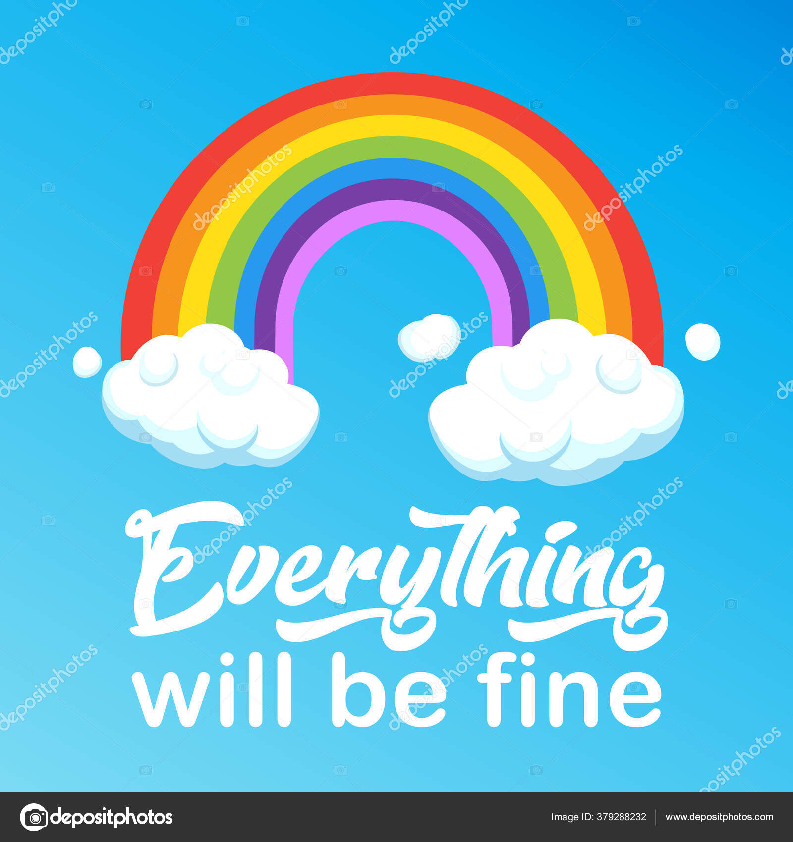 Banner Everything Will Be Fine Calligraphy Text Positive Quotes Rainbow And Clouds Cartoon Illustration Vector Sign Shirt Stock Vector Illustration Of Communication Distance 183725926