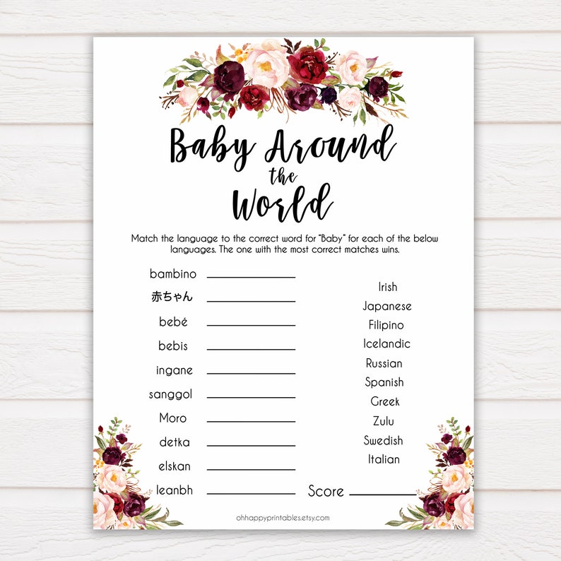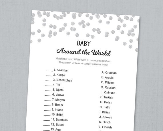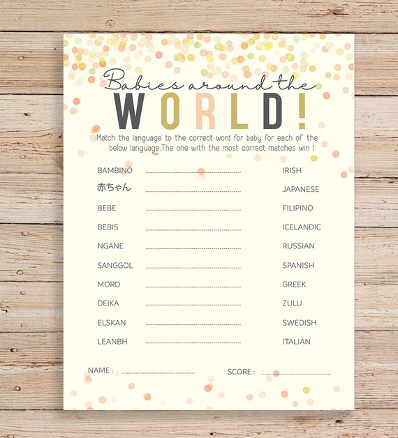 Baby Around The World Game Baby In Different Language Shower Etsy