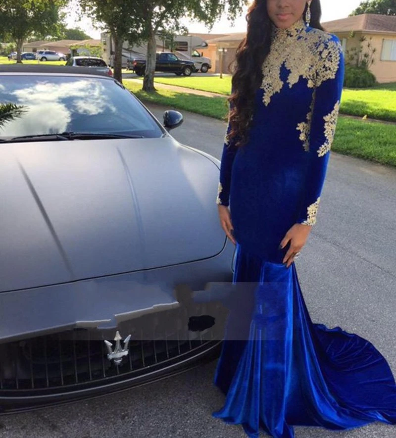 African Style Long Royal Blue Prom Dresses 2016 High Quality Velvet Gold Lace Long Sleeve Mermaid Prom Dress Blue Prom Dresses 2016 Prom Dresses 2016royal Blue Prom Dresses Aliexpress