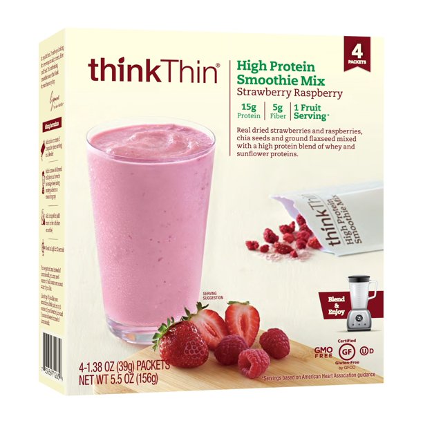 Thinkthin High Protein Smoothie Mix Strawberry Raspberry 1 38 Oz 4 Ct Walmart Com Walmart Com